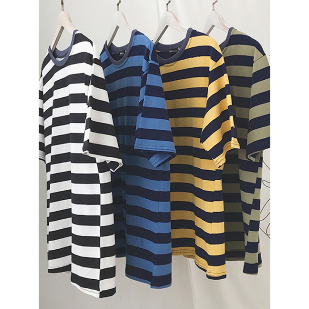 ( random ) kaos polos stripe / kaos baju garis garis hitam putih dan warna lain nya / kaos belang belang pria wanita / kaos salur / baju belang cowok cewek .